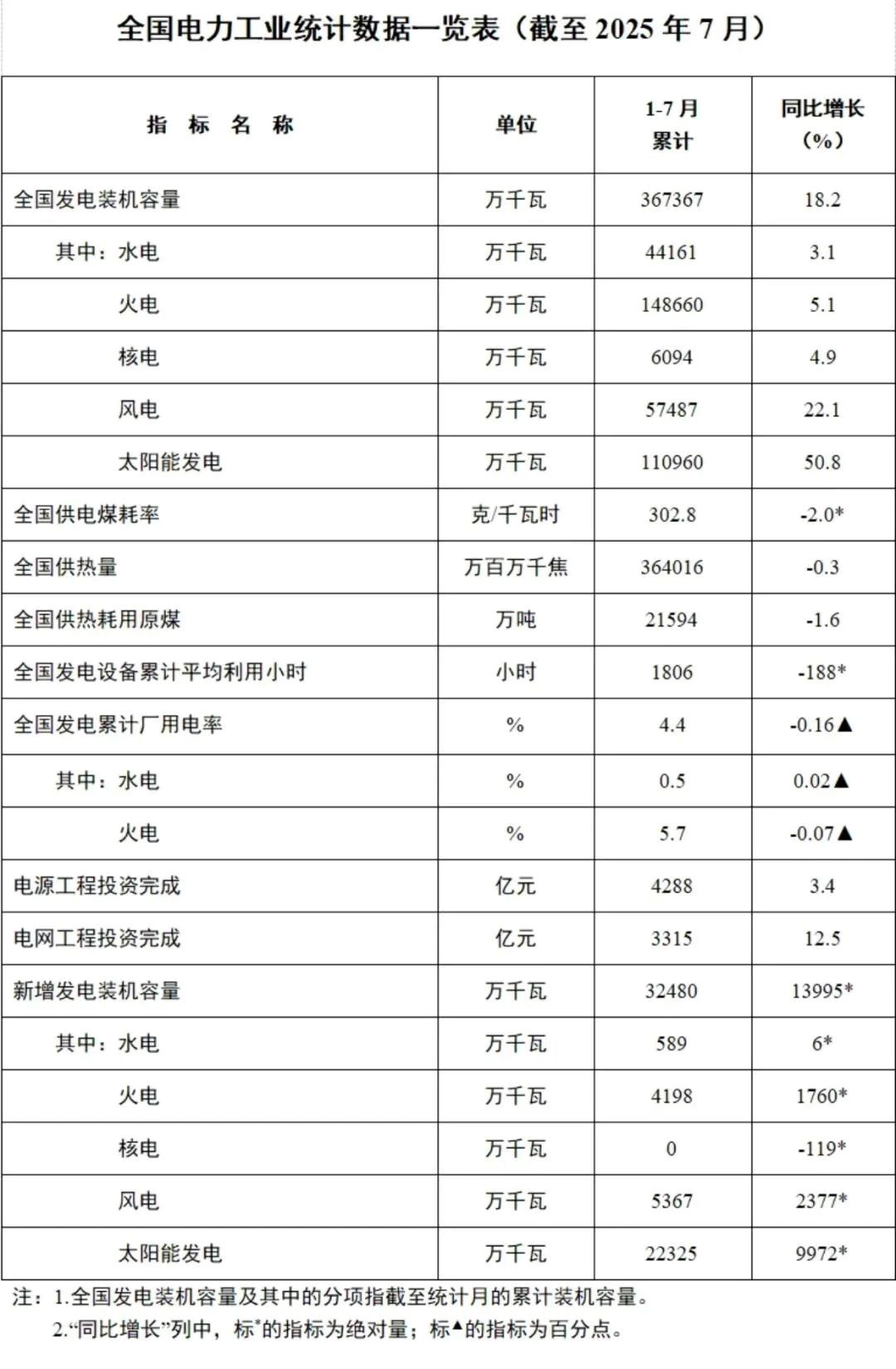 8月23日,國(guó)家能源局發(fā)布1—7月份全國(guó)電力工業(yè)統(tǒng)計(jì)數(shù)據(jù)。